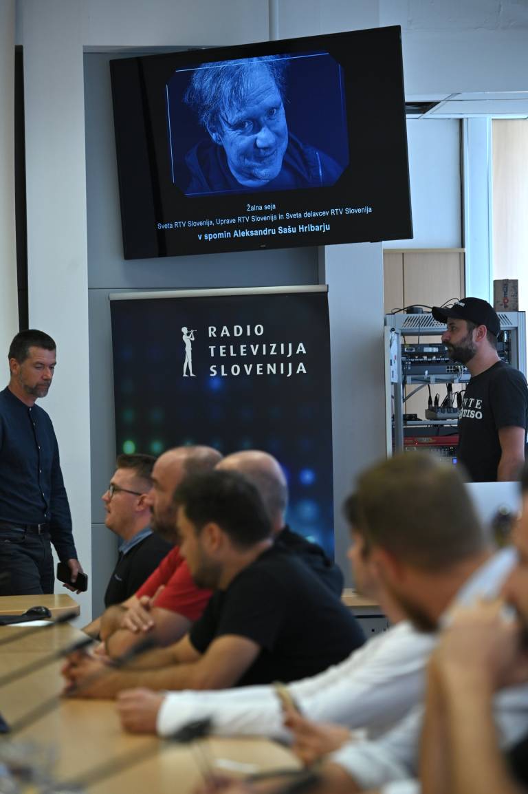 Na Radioteleviziji Slovenija se je danes odvila žalna seja v spomin na dolgoletnega radijskega voditelja Saša Hribarja, ki se je poslovil v petek.