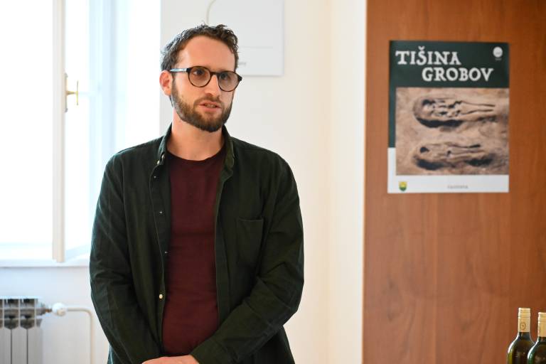 Ob 20. uri je Marko Sraka, svetovalec na Ministrstvu za kulturo Republike Slovenije odprl arheološko razstavo Tišina grobov.