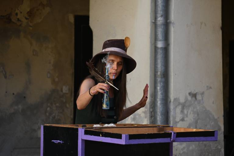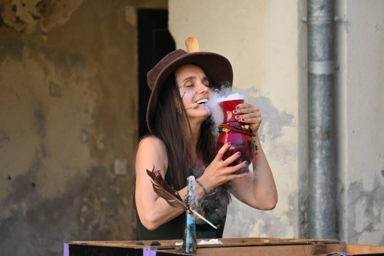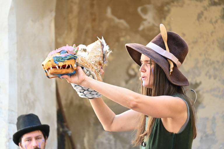 V soboto dopoldan je otroke in malo starejše obiskovalce navdušila predstava Čarovniški Blues, polna magije in glasbe. Ter zmajev.