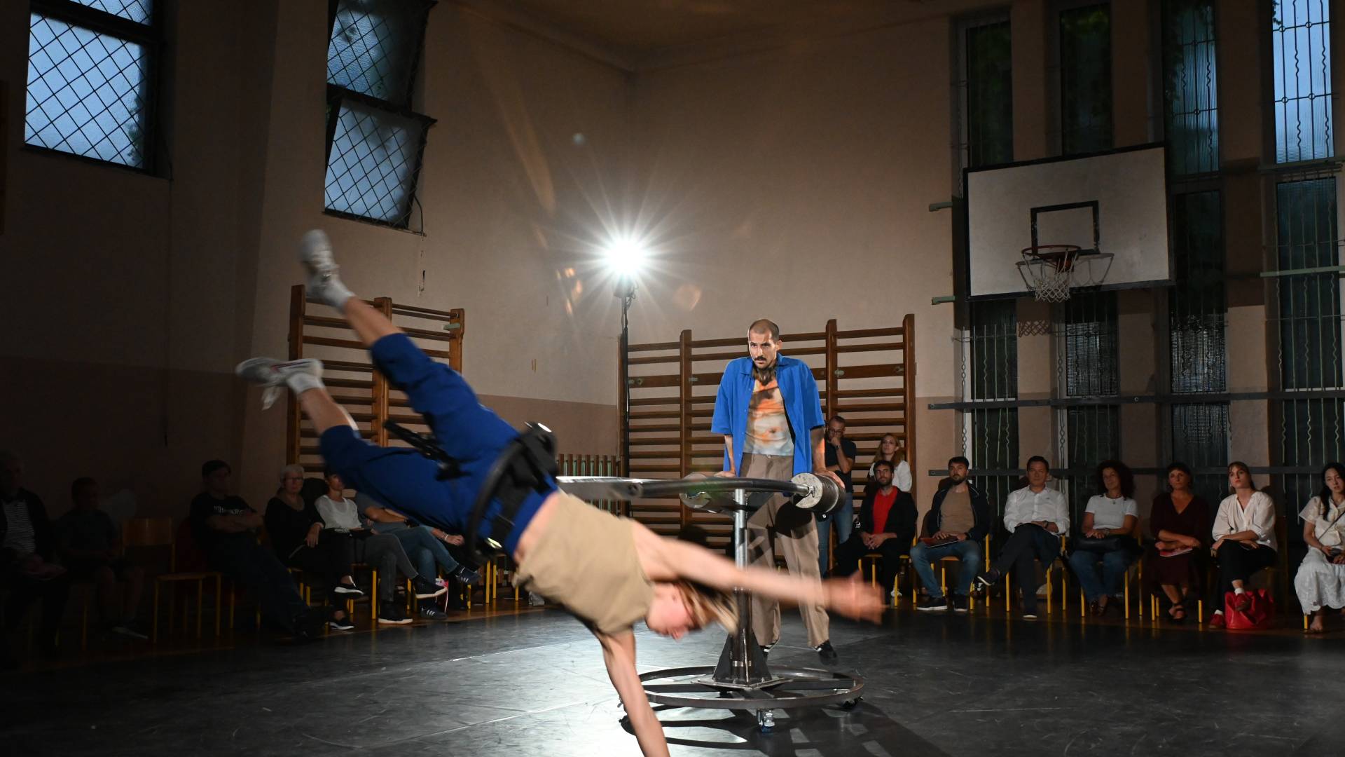 V stari telovadnici Osnovne šole I. v Murski Soboti je v okviru festivala Front@ ob 19. uri nastopila slovenska skupina Fabla z intimno predstavo Ali ptice sanjajo o letenju?.