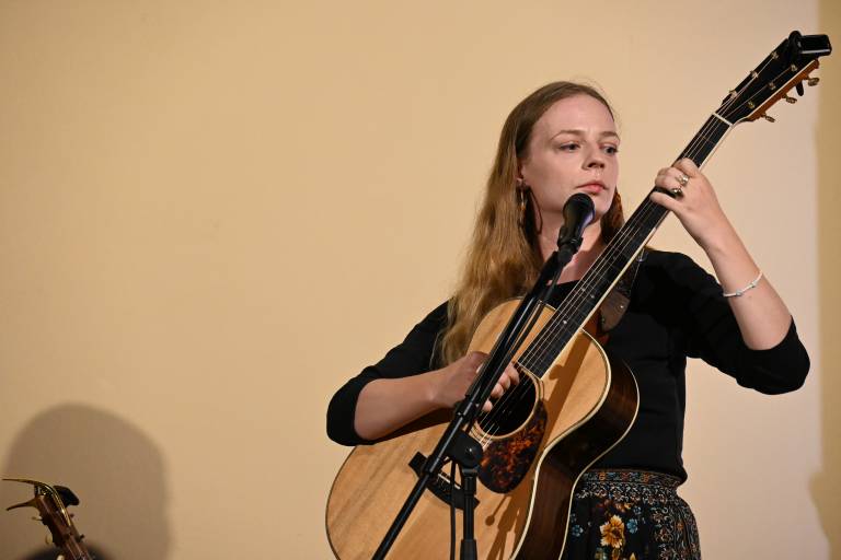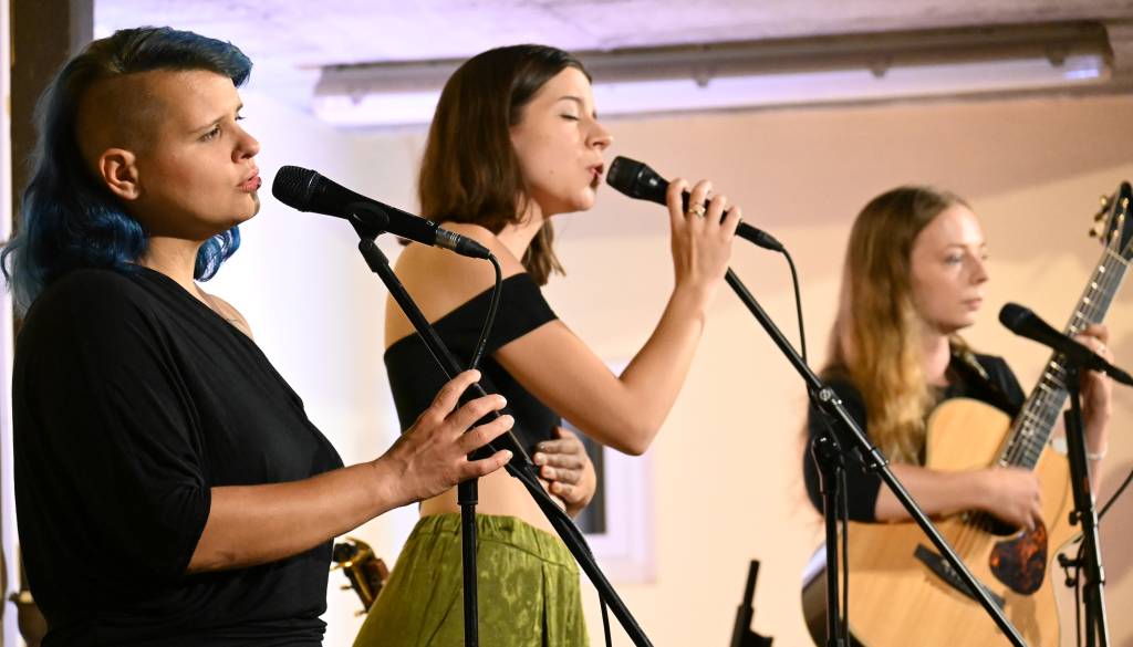 Na sinočnjem koncertu na Skritem dvorišču smo spremljali kantavtorski projekt 3:RMA kitaristke Urške Supej in pevke Maše But, ki se jima je na odru pridružila še Anja Hrastovšek.