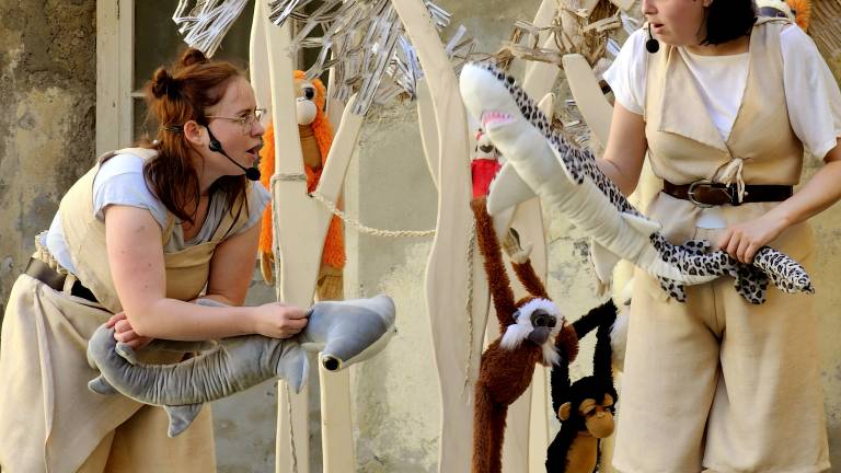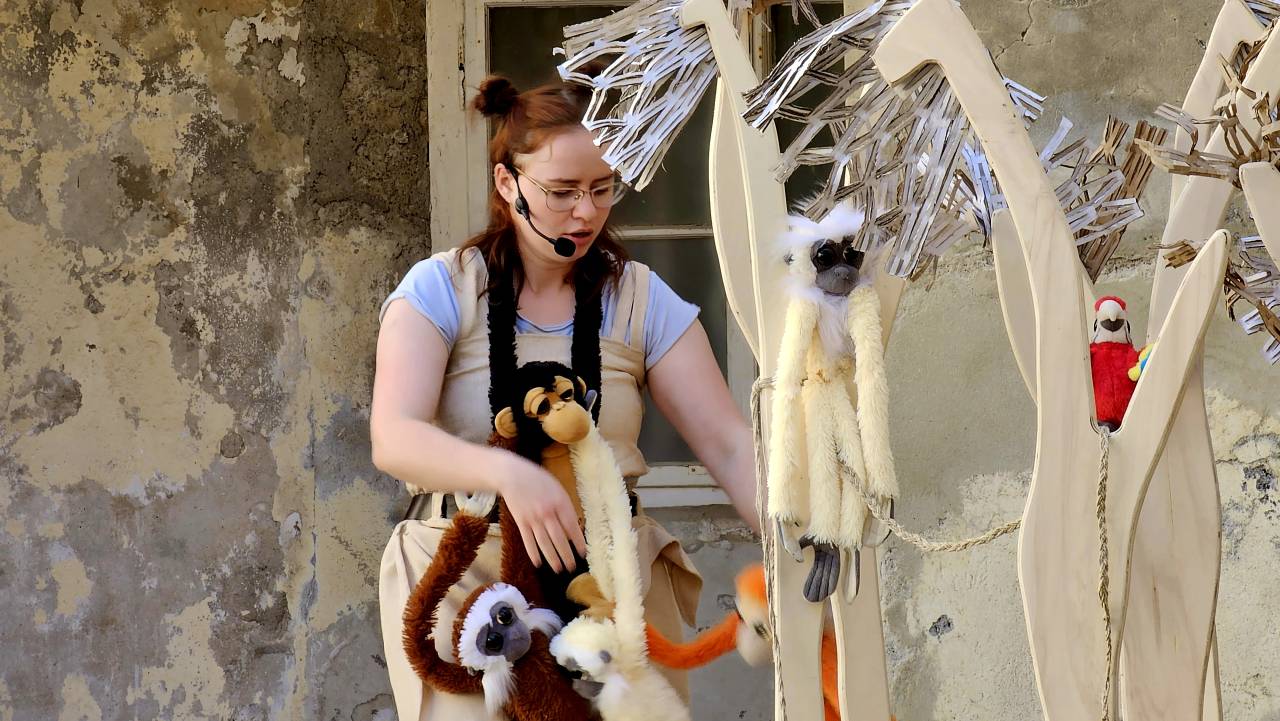 Tajda Podvratnik in Noemi Čop sta prestavili zgodbo o svojeglavi in razposajeni opici, ki so jo iz njenega otoka ugrabili ljudje, da bi jo naučili trikov.