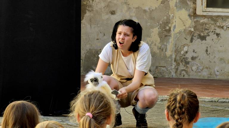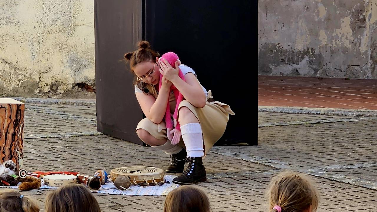 Na grajskem dvorišču je današnje dopoldne popestrila otroška predstava, ki je otroke in starše spomnila, kako pomembna je ljubezen do vseh živih bitij.