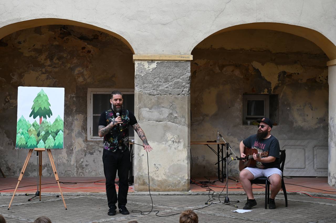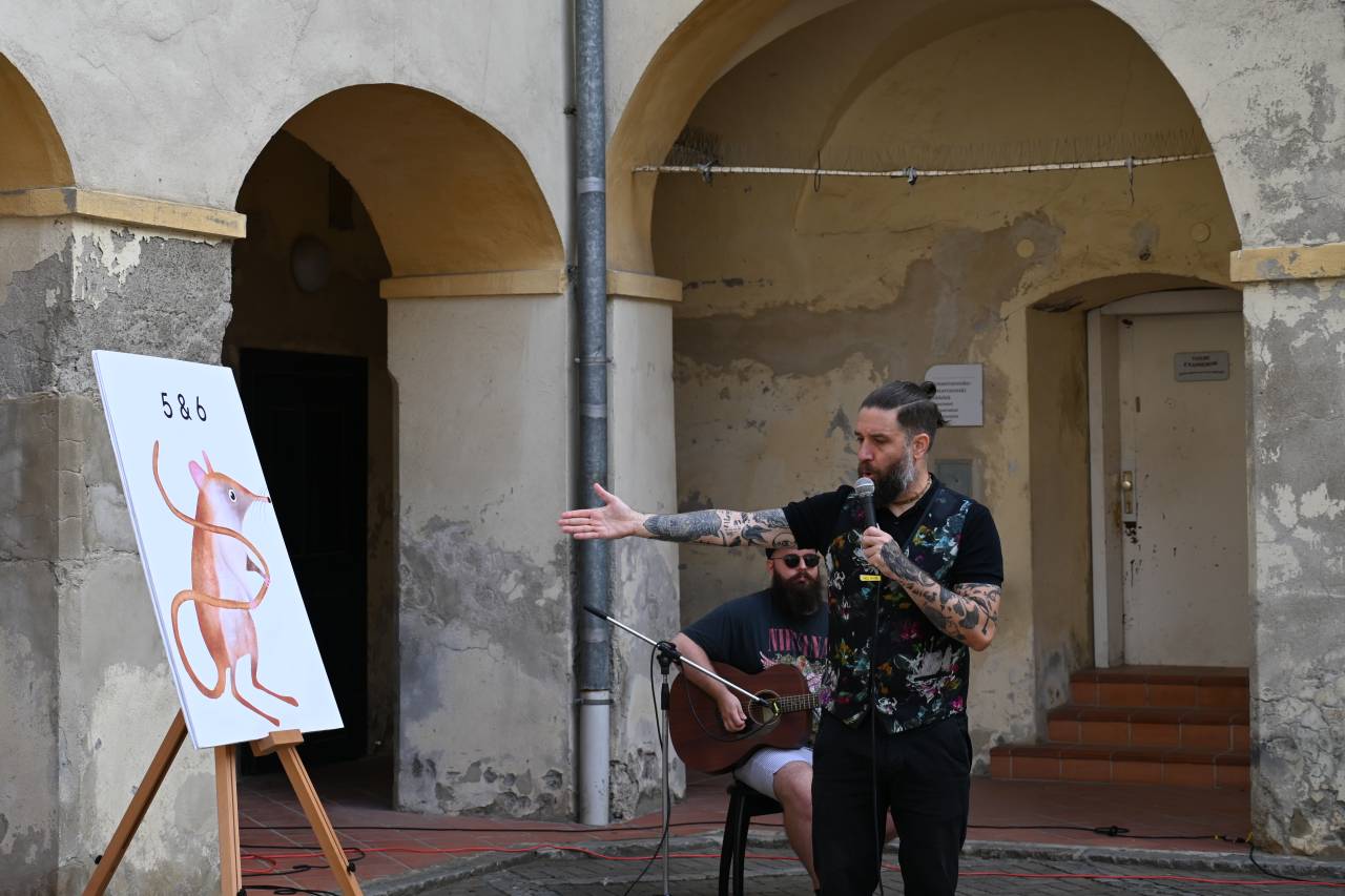 Žiga X Gombač in Albert Camlek sta nastopila na predstavi za otroke z naslovom Zaklad pokljuških škratov, nastali po istoimenski slikanici.