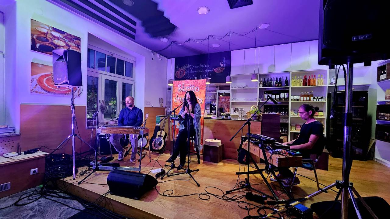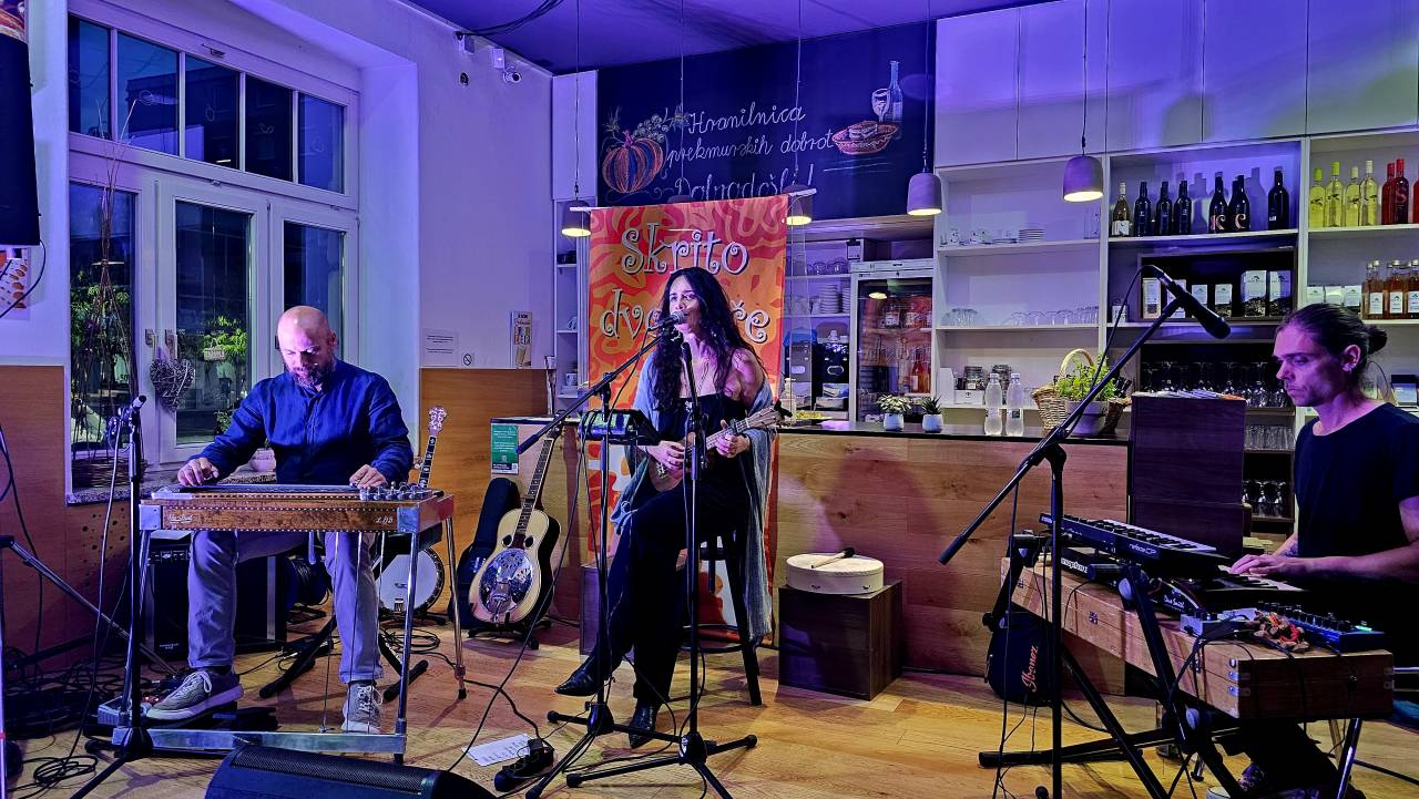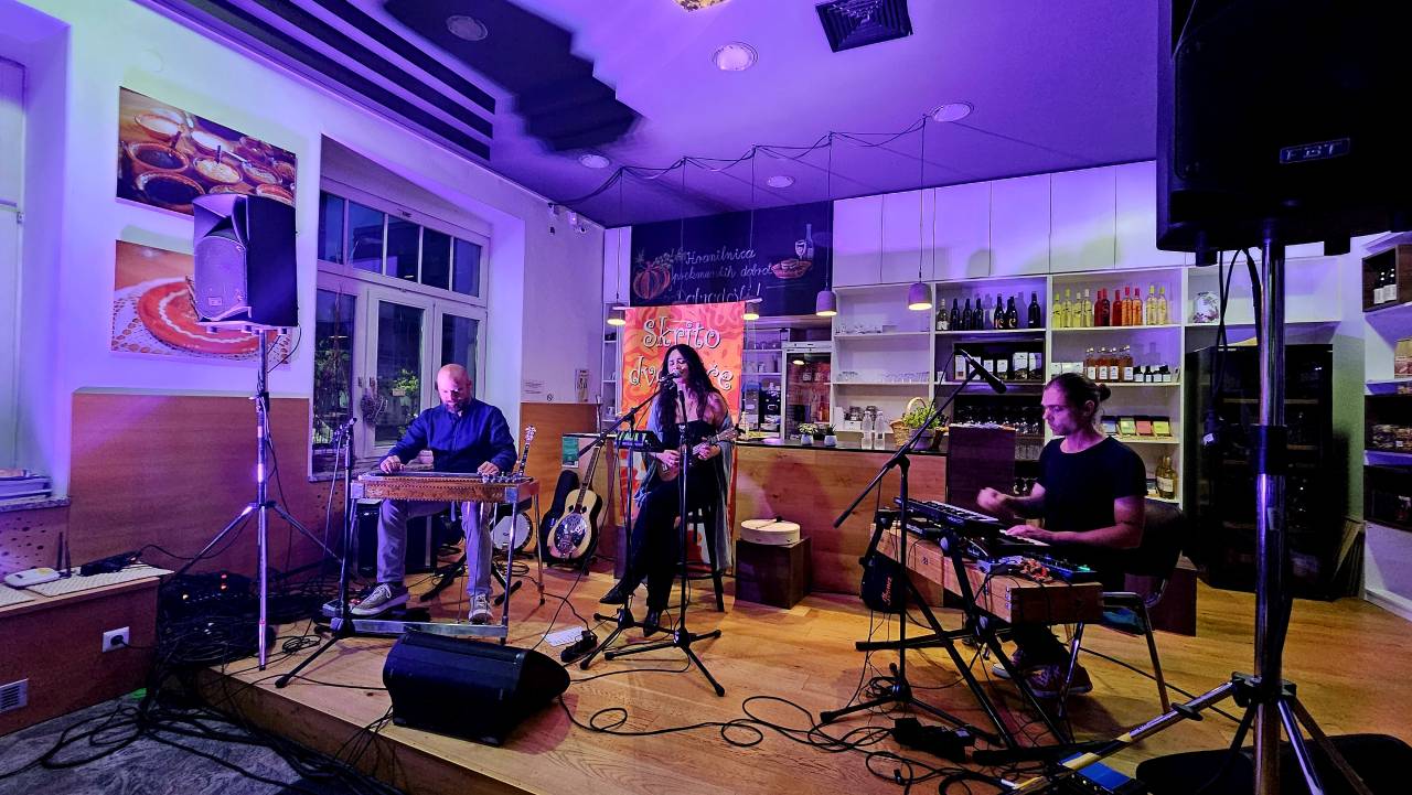 Katja Šulc, mlada slovenska kantavtorica, ter multiinstrumentalista Andraž Mazi in Luka Uršič so na Soboškem poletju, tokrat zaradi slabega vremena v Hranilnici prekmurskih dobrot, pričarali nepozaben večer.