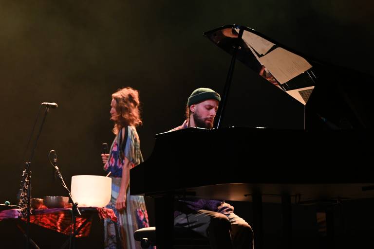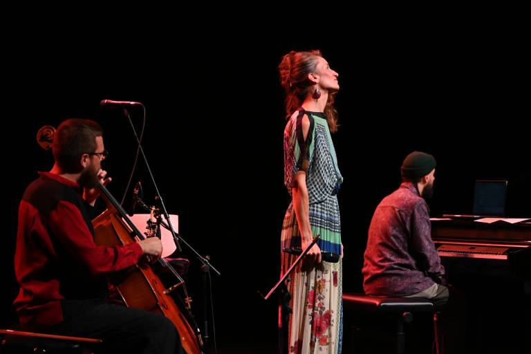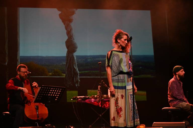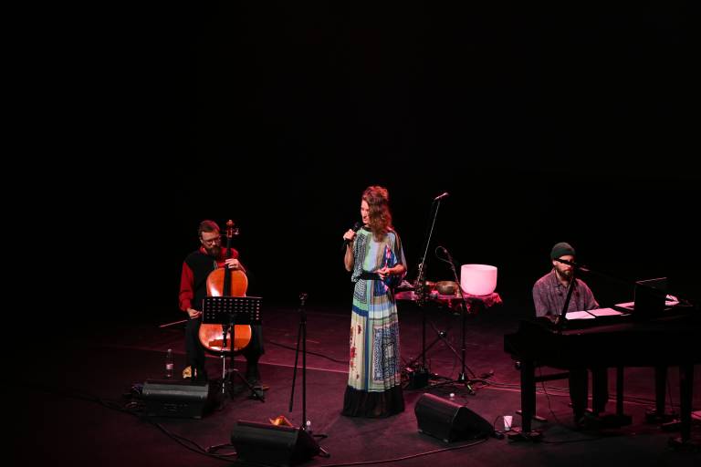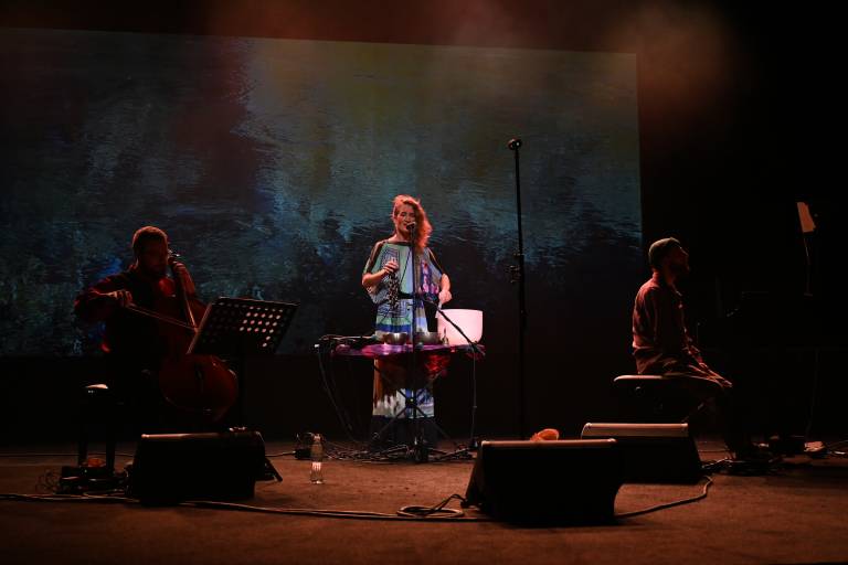 Vokalistka Alja Petric, violončelist in tolkalec Kristijan Krajnčan ter Rok Zalokar na klaviaturah in elektroniki so ustvarili večplastno zvočno krajino, ki je obiskovalce popeljala v svet subtilnih zgodb in občutkov.