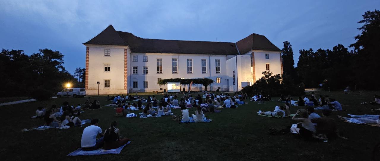 Obiskovalci so si na grajskem dvorišču ogledali film Gepack.