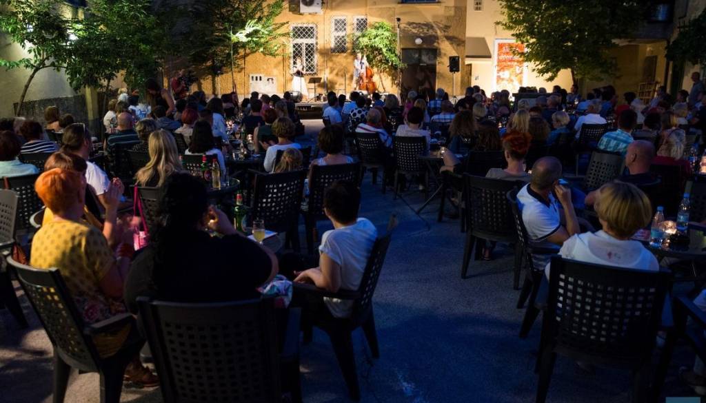 Minulo soboto je Skrito dvorišče za Hranilnico dobrot na Slovenski ulici znova pričaralo intimno vzdušje, v katerem je tokrat navduševala duet Pliš, v zasedbi pevke Aleksandre Ilijevske in Marka Gregoriča na kontrabasu in kitari.
