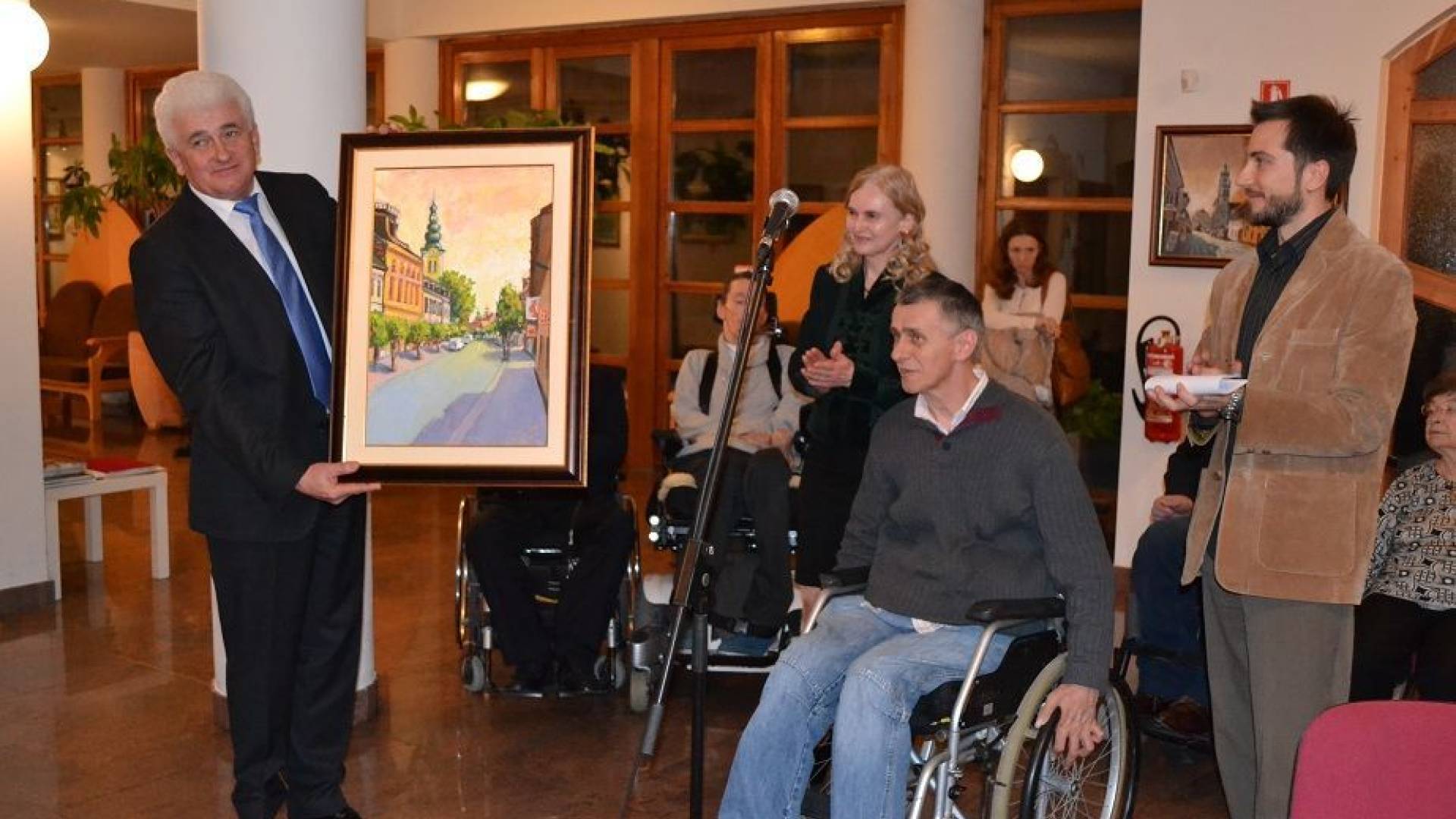 Včeraj je v koncertni dvorani Lendava potekala otvoritev likovne razstave - Slovenska mesta. Širši javnosti so svojo umetniška dela predstavili umetniki, ki slikajo z usti ali nogami.