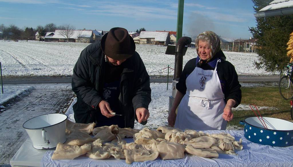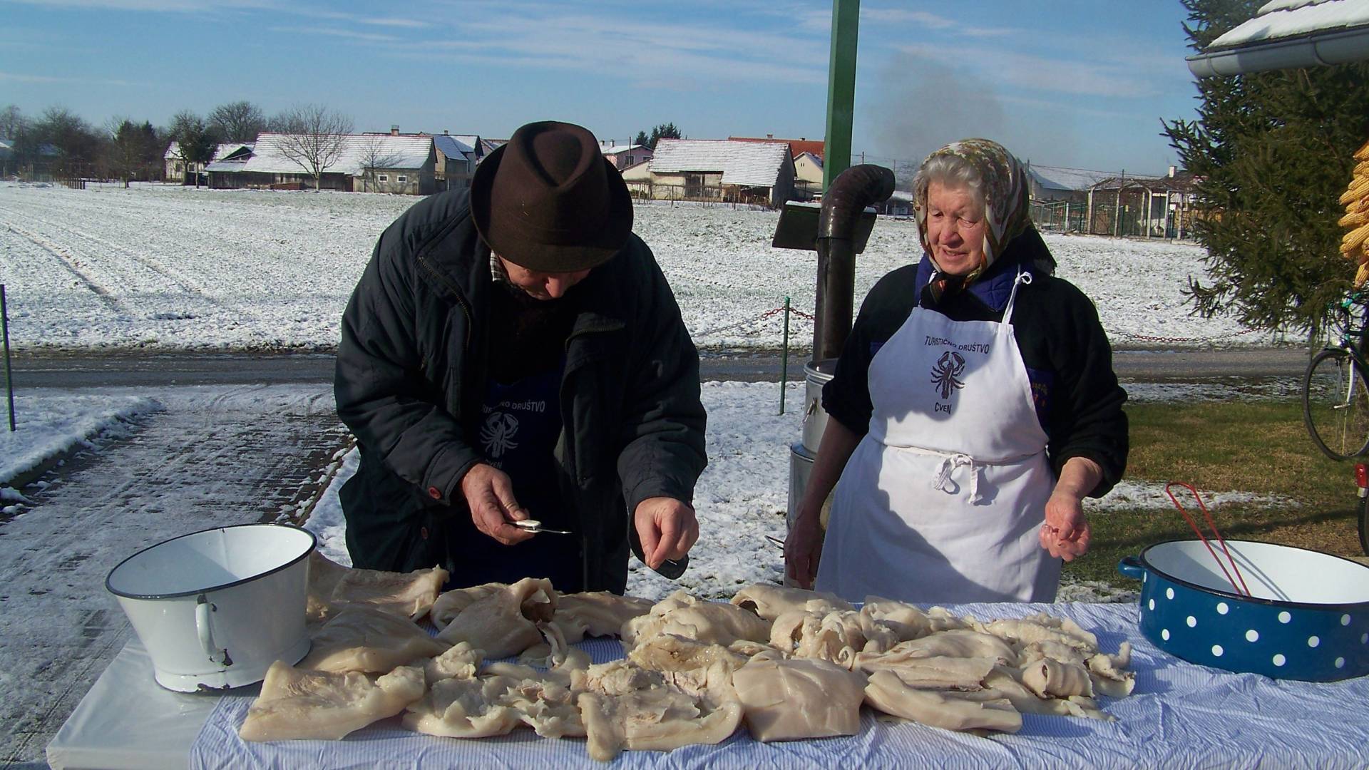 Današnje sobotno jutro posuto s ščepcem snega, ki je dan prej pobelil Prlekijo, je bilo kot nalašč primerno za Prleške koline, katere so na Cvenu že desetič pripravili člani Turističnega društva Cven.