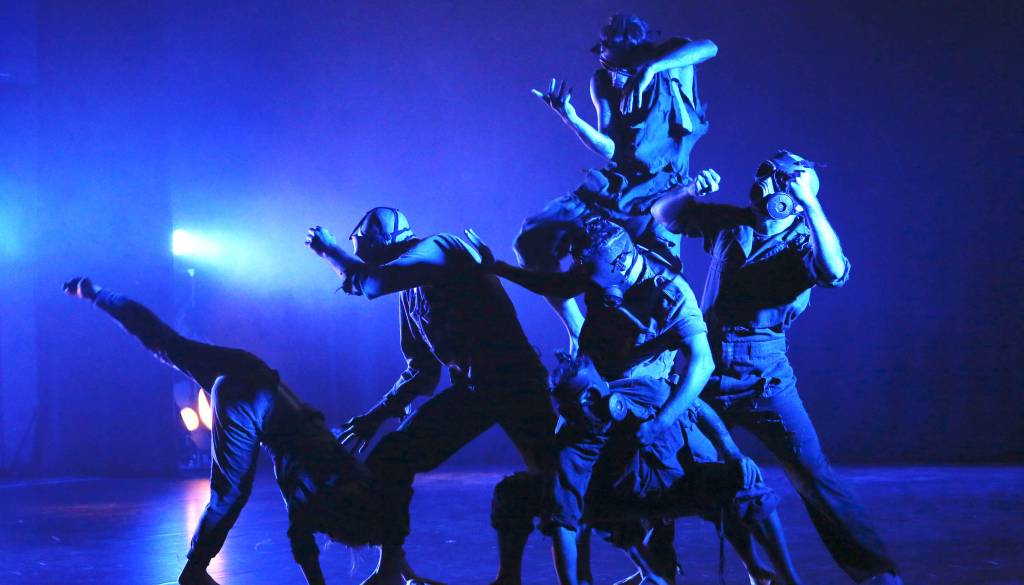 Drugi dan festivala Front@ je minil v znamenju predavanja in plesnih predstav. Na odru so bili tudi s plinskimi maskami.