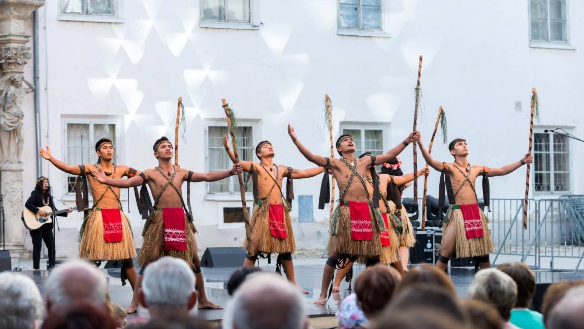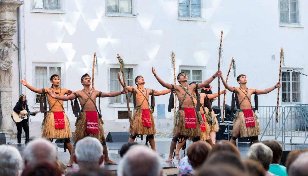 Na grajski ploščadi v parku je včeraj zaživel Folkart 2019, ki je v mesto pripeljal umetnike iz Severne Makedonije in Guama.
