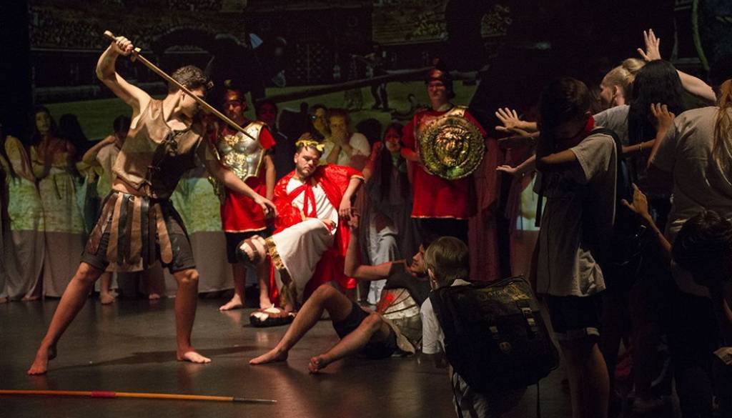 Predstava, v kateri so naši dijaki v nedeljo nastopili skupaj s 70 vrstniki iz tujine, je temeljila predvsem na gibanju, ritmu in plesu in prikazala plod intenzivnega dela številčne ekipe umetnikov, mentorjev, spremljevalcev ter mladih iz različnih narodnih, socialnih, kulturnih in verskih okolij.