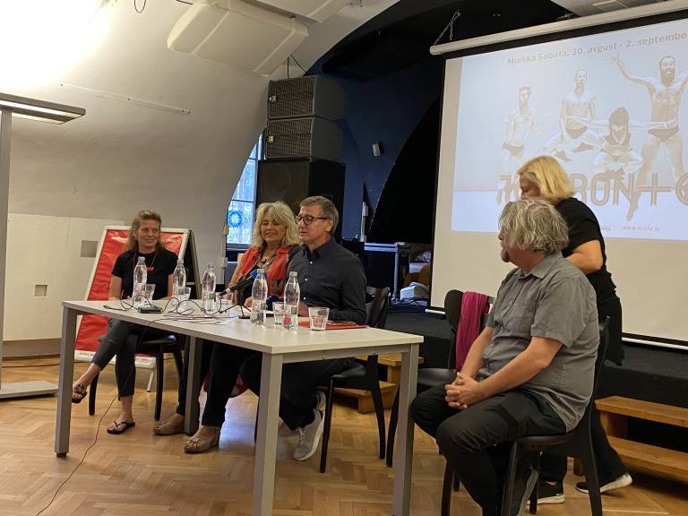 »Odločili smo se, da vse naredimo malo bolj sproščeno, da lahko obiskovalci direktno sprašujejo stvari, ki jih zanimajo. V Murski Soboti so obiskovalci kar pogumni in nas veseli, da ta komunikacija z umetniki vedno nekako steče.«