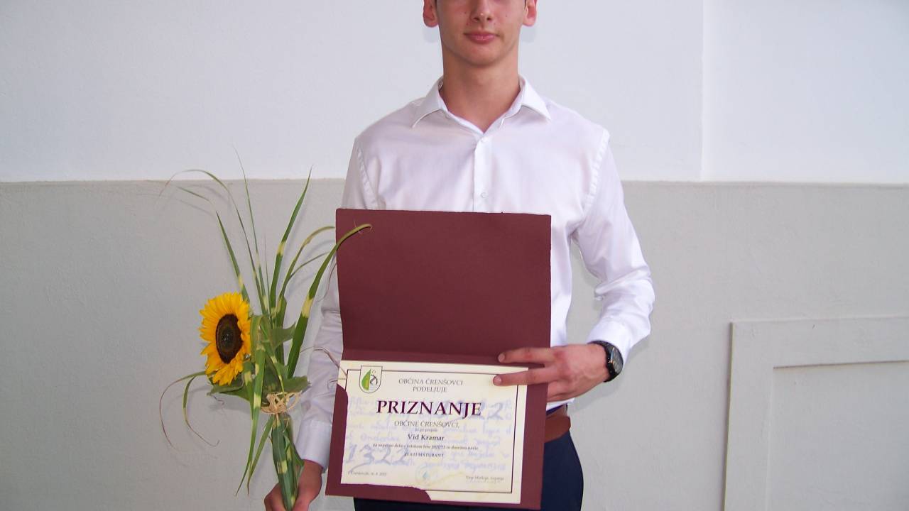 Občina Črenšovci se vsako leto spomni na dijake, ki so v tekočem šolskem letu šolanje končali z odličnim uspehom in postali tudi zlati maturanti. Letos so dobili zgolj enega zlatega maturanta - to je postal Vid Kramar iz Črenšovcev.