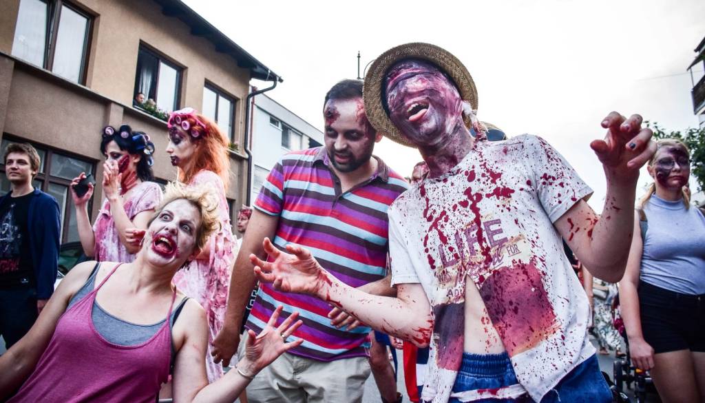 Na ljutomerskem Glavnem trgu so oživeli mrtveci. Šlo je seveda za zabaven shod filmskih ljubiteljev, ki so se v okrvavljenih oblačilih, zamaskirani v zombije poklonili grozljivkam. Podobni dogodki v tujini potekajo že dolga leta in pogosto spremljajo različne konvencije in druge dogodke fantazijskega žanra.