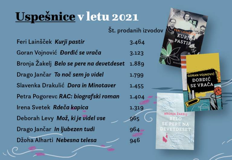 Samo v lanskem letu je bilo prodanih 3.464 izvodov te knjige, kar je roman povzpelo na sam vrh lestvice najbolje prodajanih Beletrininih knjig leta 2021. Pisatelj Feri Lainšček pa je s tem osvojil naslov: najbolj prodajan Beletrinin avtor leta 2021.
