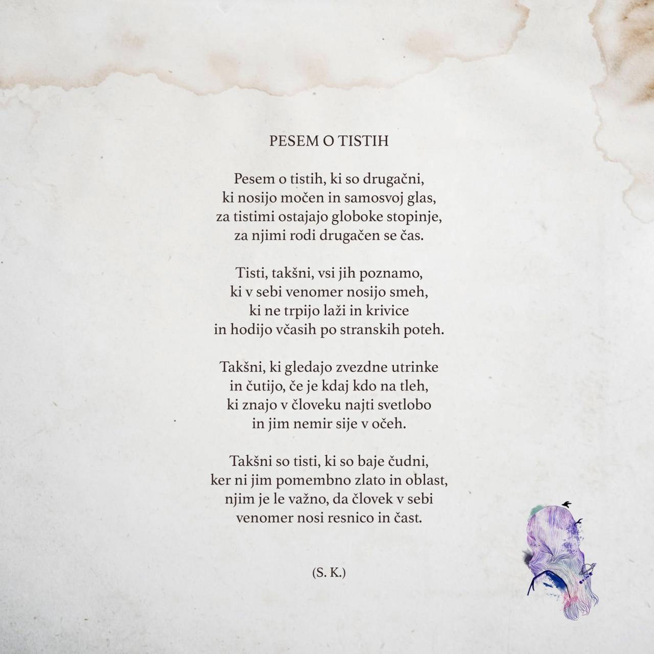 Vsi ljubitelji poezije in tudi tisti, ki ste kako lirično delo nazadnje prebrali pod prisilo v šoli, jo na socialnih omrežjih najdete pod psevdonimom S.K. Mogoče Sarina umetnost ozdravi tudi vas.