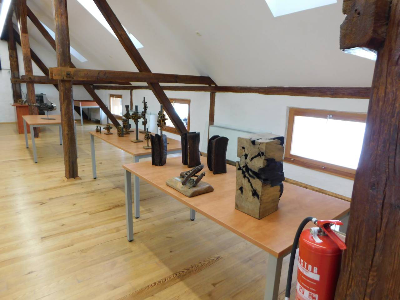 Umetnik je razstavljene izdelke izdelal iz kovine, lesa in delno iz keramike.