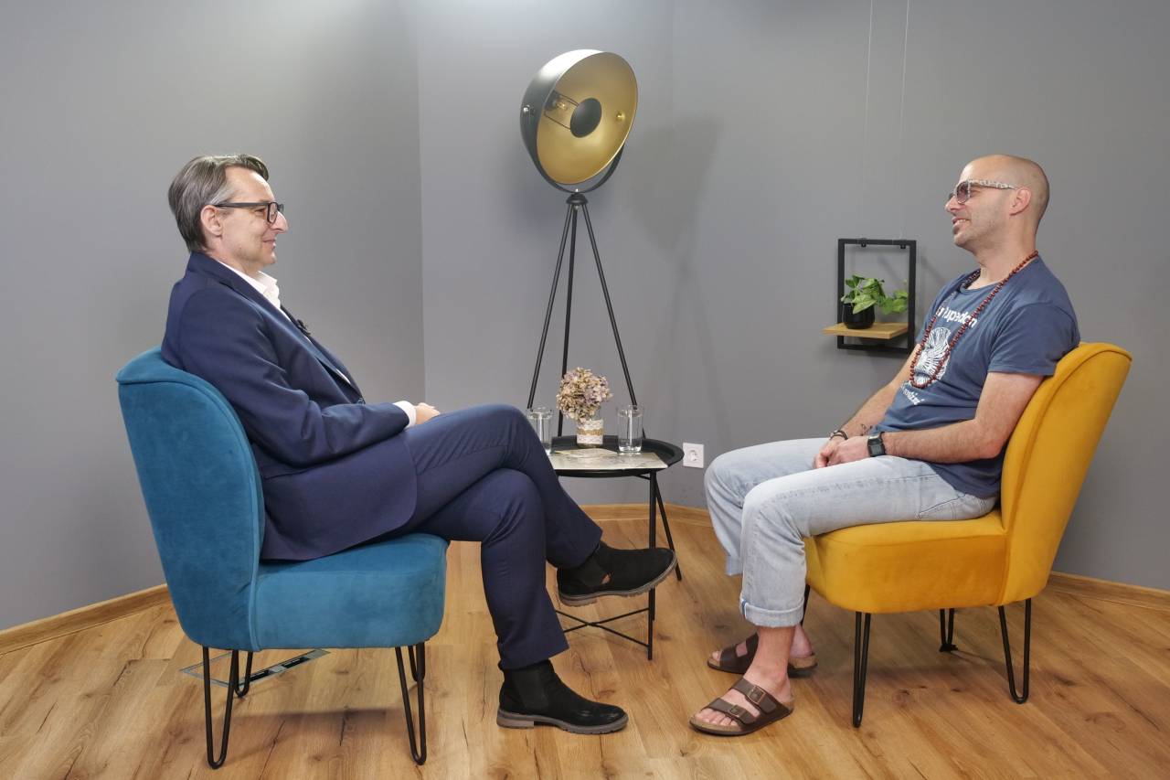 V pogovoru z Benjaminom Langnerjem v oddaji Med nama na televiziji IDEA je orisal svojo pot od najstniških bendov do kantavtorstva, navezanosti na Istro ter nastanku albuma Kamen trn brin. »Najraje sem glasbenik,« je poudaril.