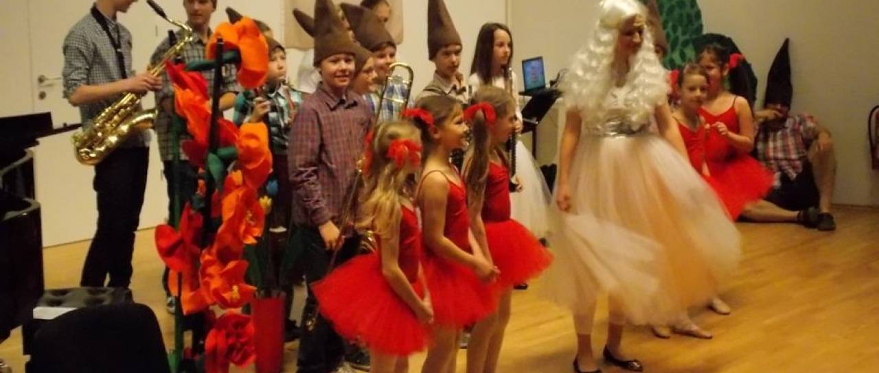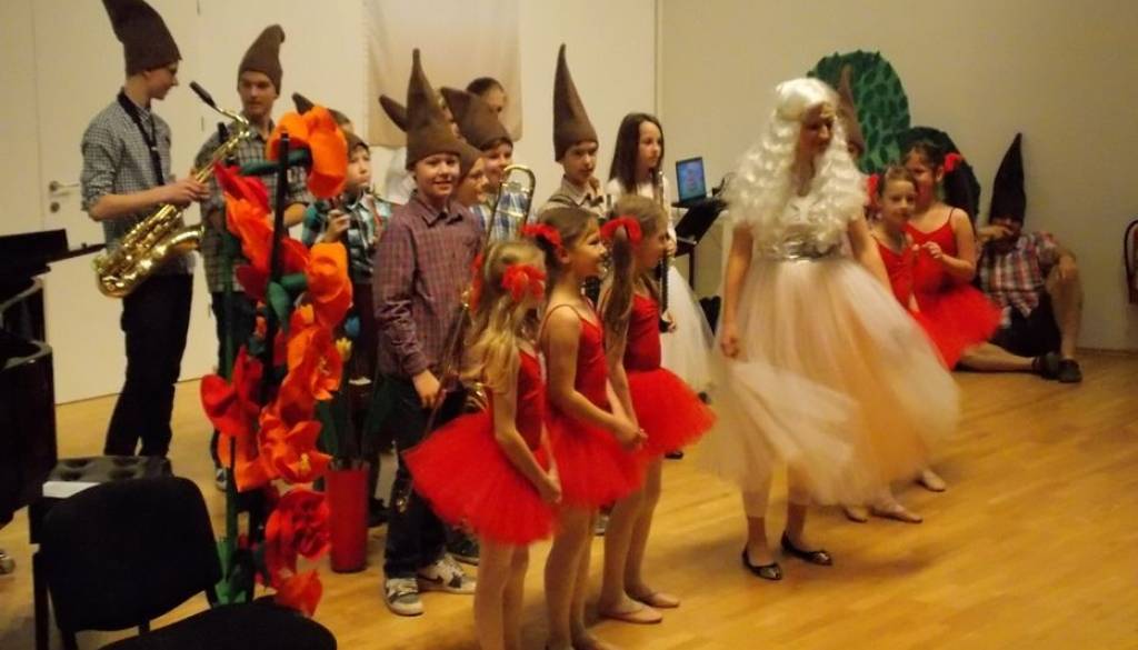 Pravljična bitja iz začaranega gozda so skozi zgodbo o vilah in palčkih predstavili svoje glasbeno znanje in glasbene inštrumente, pokazali so kako vila s svojimi prijatelji praznuje in kako se spomladi narava in vse prebuja.