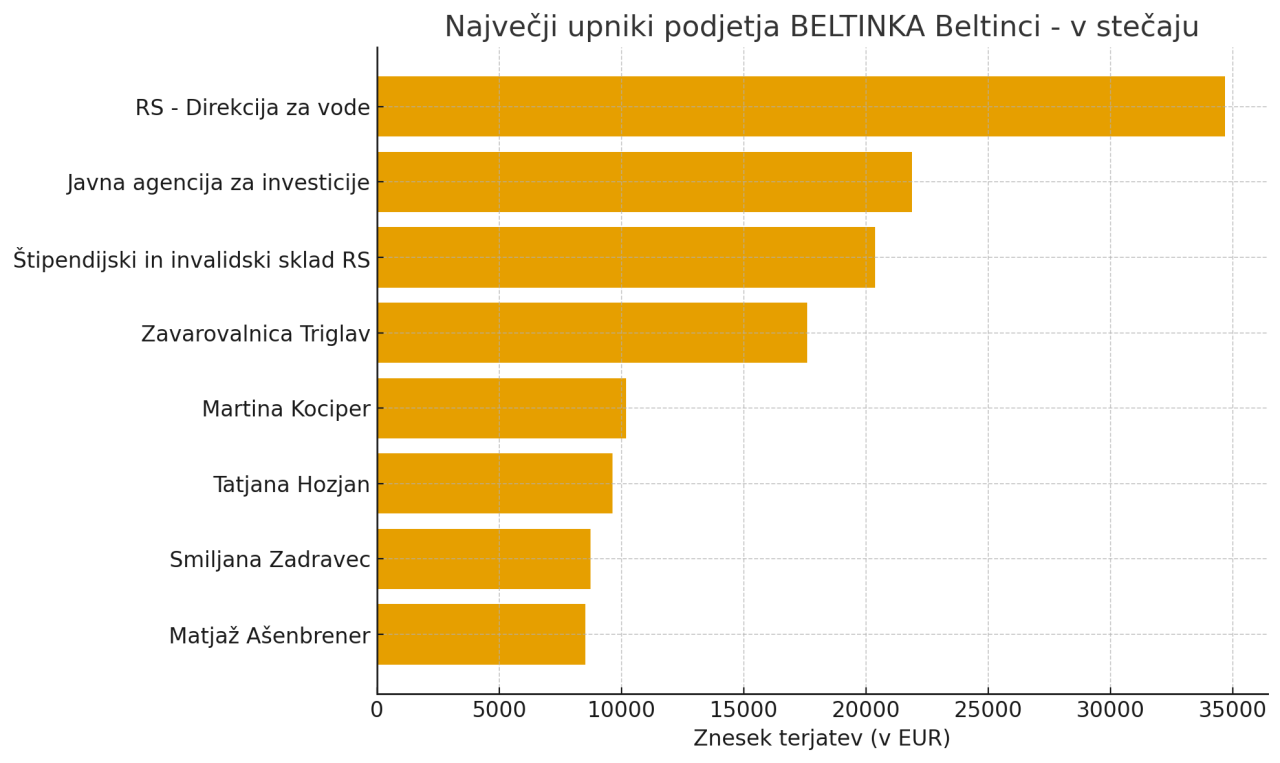 V stečajnem postopku družbe Beltinka Beltinci je bilo preizkušenih za 299.595 evrov terjatev, od tega je bilo priznanih 298.885 evrov, kar pomeni, da je bil večji del zahtevkov upnikov potrjen brez zapletov.