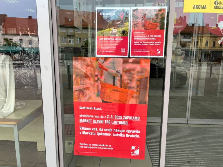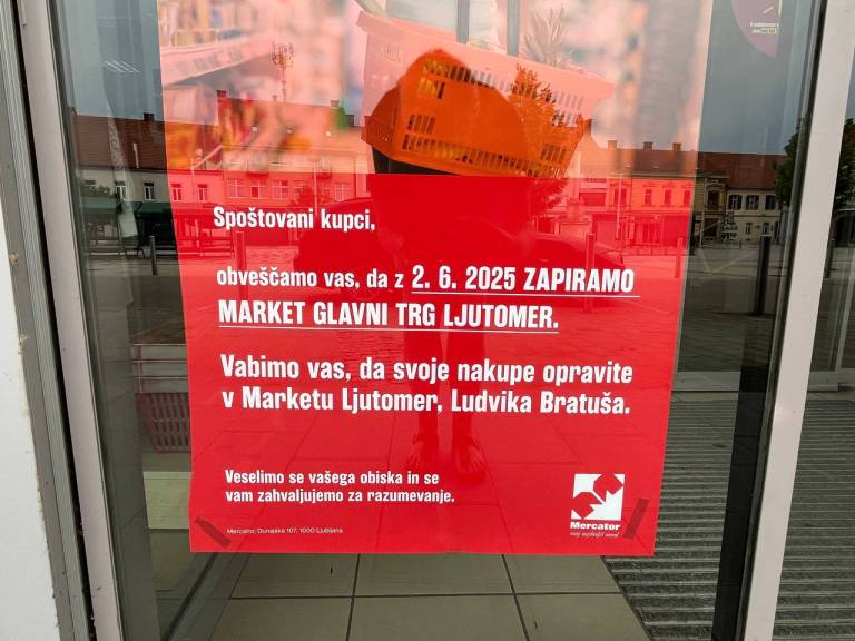 Mercator je zaprl še eno poslovalnico v Pomurju, gre za Mercator market Glavni trg Ljutomer, kjer je mimoidoče na vhodu pričakalo obvestilo, da je trgovina od jutrišnjega dne zaprta. Še zadnjič je poslovala v soboto.