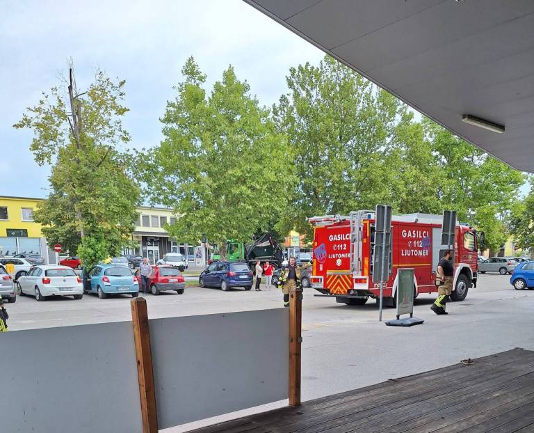 Danes dopoldne je bilo pred trgovino Tuš v Ljutomeru zaznati prisotnost gasilcev in zaskrbljene poglede mimoidočih.