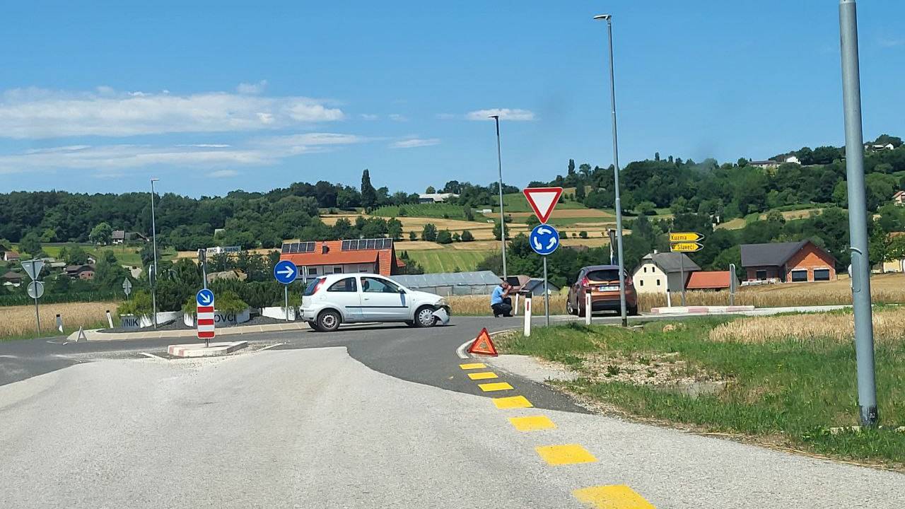 V krožišču med vasjo Motovilci in vasjo Dolnji Slaveči je danes dopoldne prišlo do prometne nesreče.
