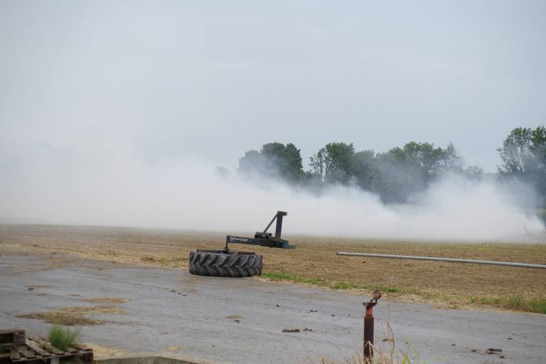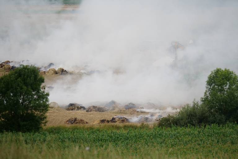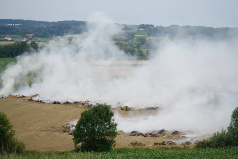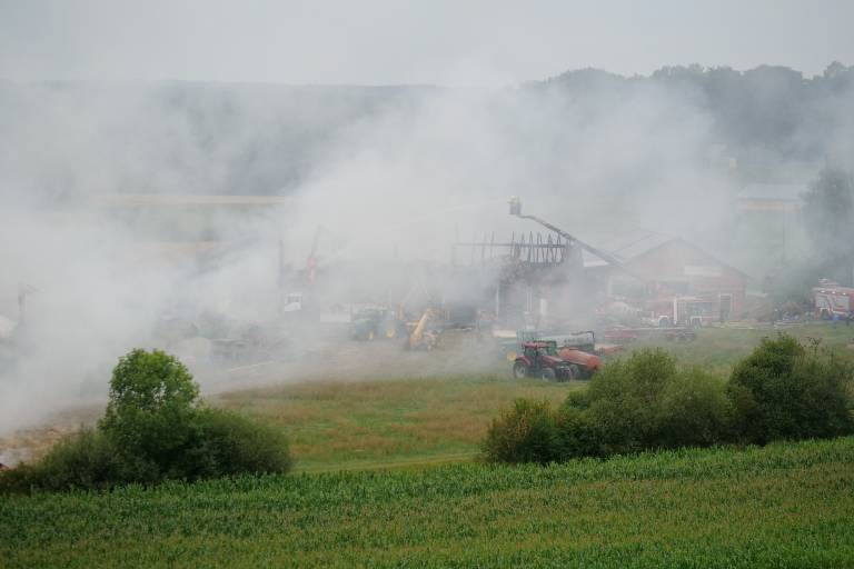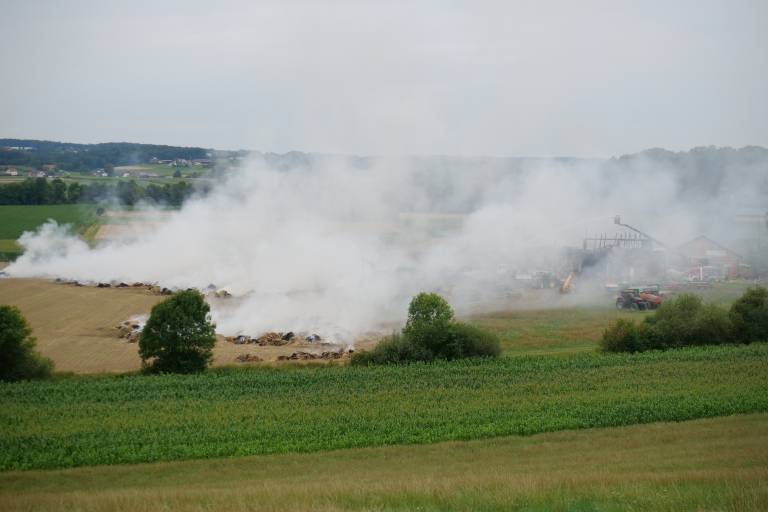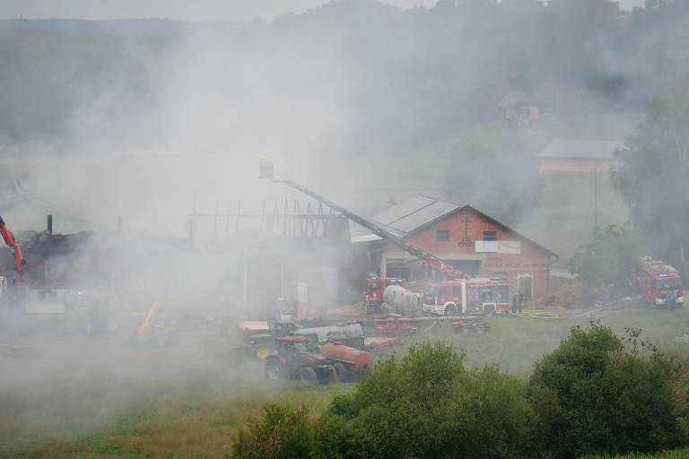 Požar je izbruhnil v pomožnem objektu, v katerem so bile shranjene bale sena in delovni stroji, zagorelo pa je celotno ohišje hleva ter več kmetijskih strojev.