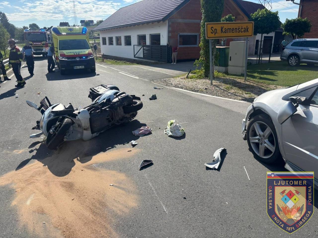 Po prvih informacijah s terena je prišlo do trčenja med avtomobilom in motorjem, posredujejo gasilci.