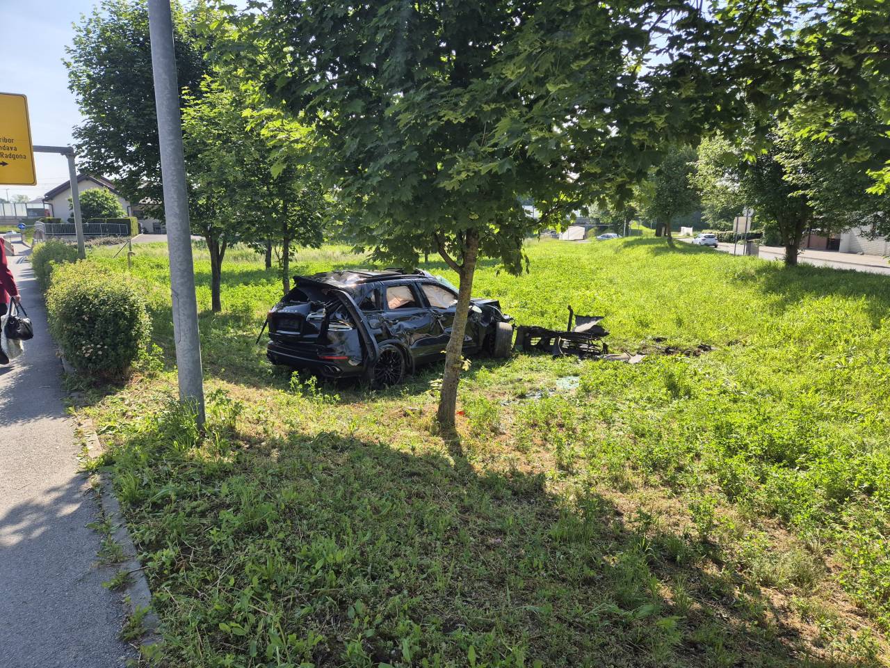 Na vozilu so vidne hude poškodbe: sprednji del je popolnoma uničen, streha je deformirana, zmečkana so tudi vrata in blatniki. V notranjosti vozila so se sprožile zračne blazine.