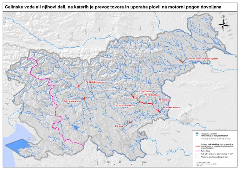 Pravilnik o plovbi določa, da je plovba s plovili na motorni pogon po celinskih vodah dovoljena le tam, kjer vlada to izrecno določi. Med dovoljenimi območji so deli reke Save, Ljubljanica, Krka in Drava, Mura pa med njimi ni.