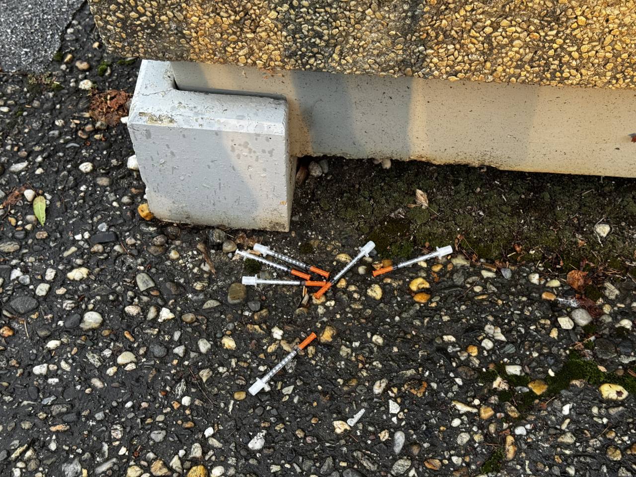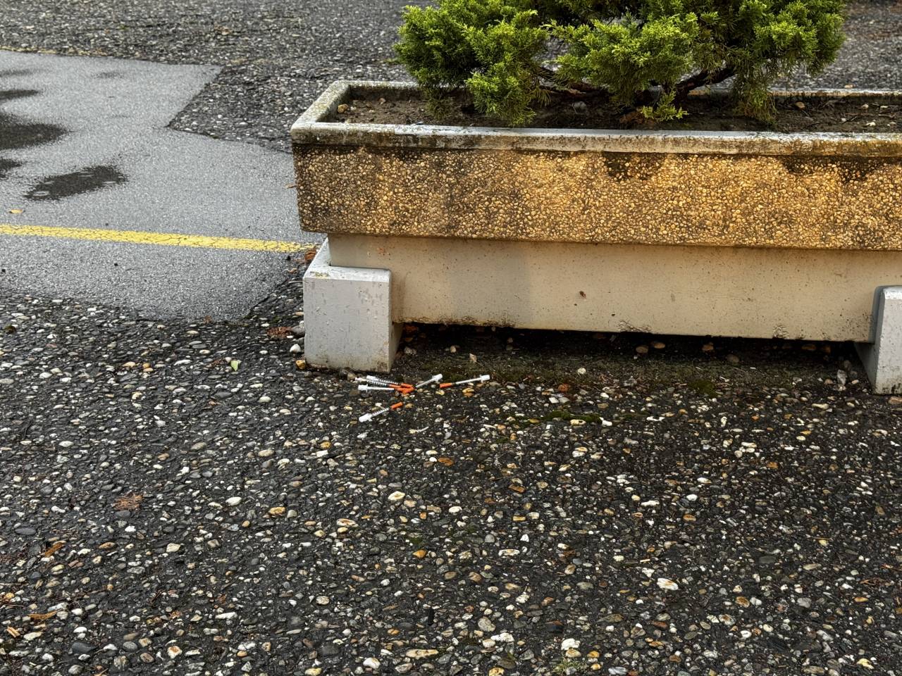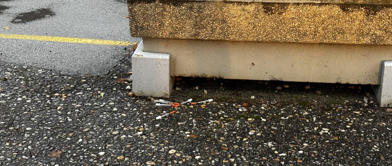 Igle so bile odvržene ob betonskih koritih pri tržnici, pomenijo pa lahko resno nevarnost za zdravje ljudi, še posebej mladoletnih, ki se na tem območju pogosto gibljejo.