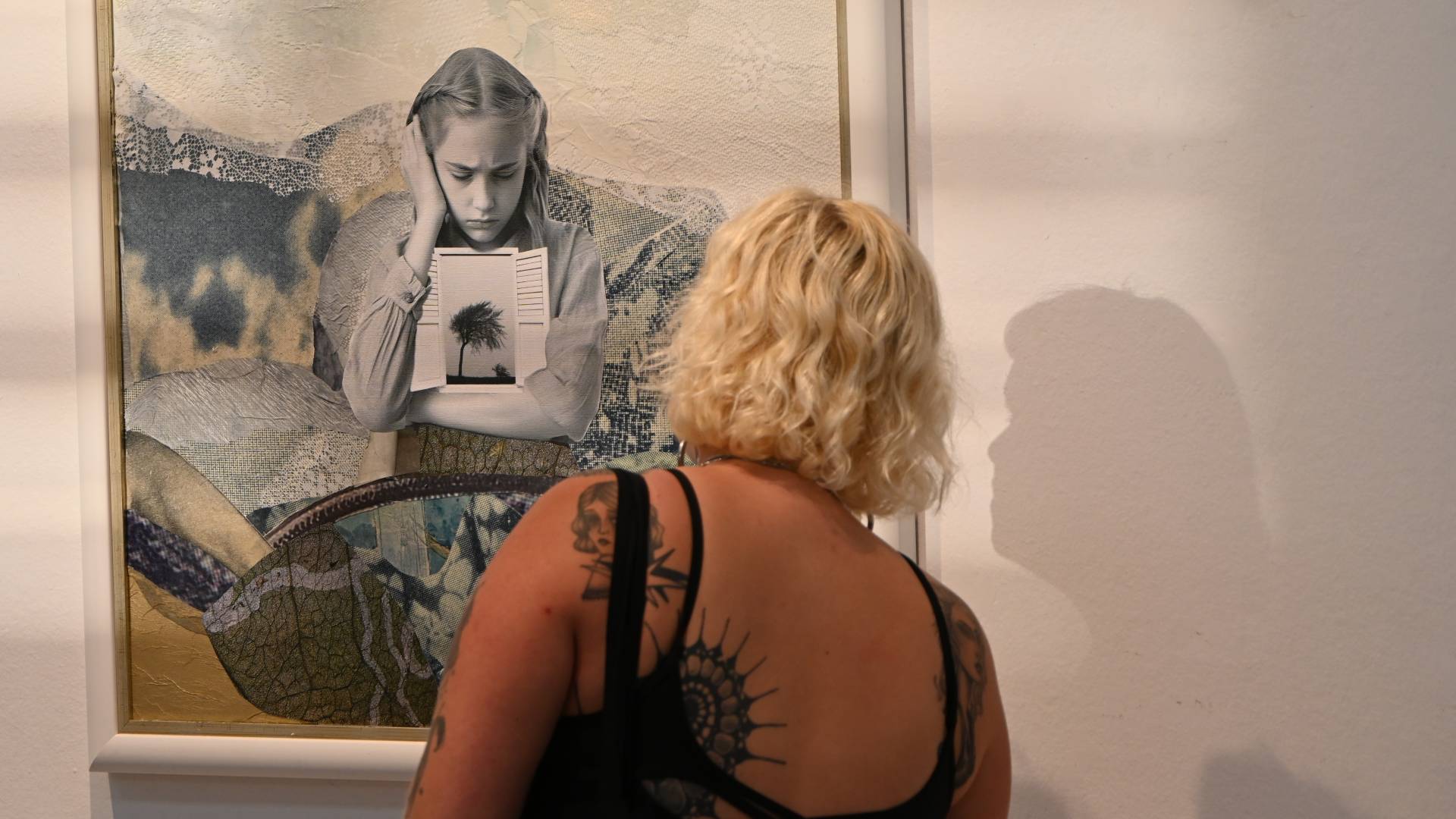 Umetnica Maruša Štibelj (1986) se predstavlja s tremi vsebinsko povezanimi cikli kolažev: Kronično pozni (2018–2021), Melanholija pod površjem (2020–2024) in Objem žalovanja (2024–2025), združenimi pod naslovom Vse razpoke žalosti.