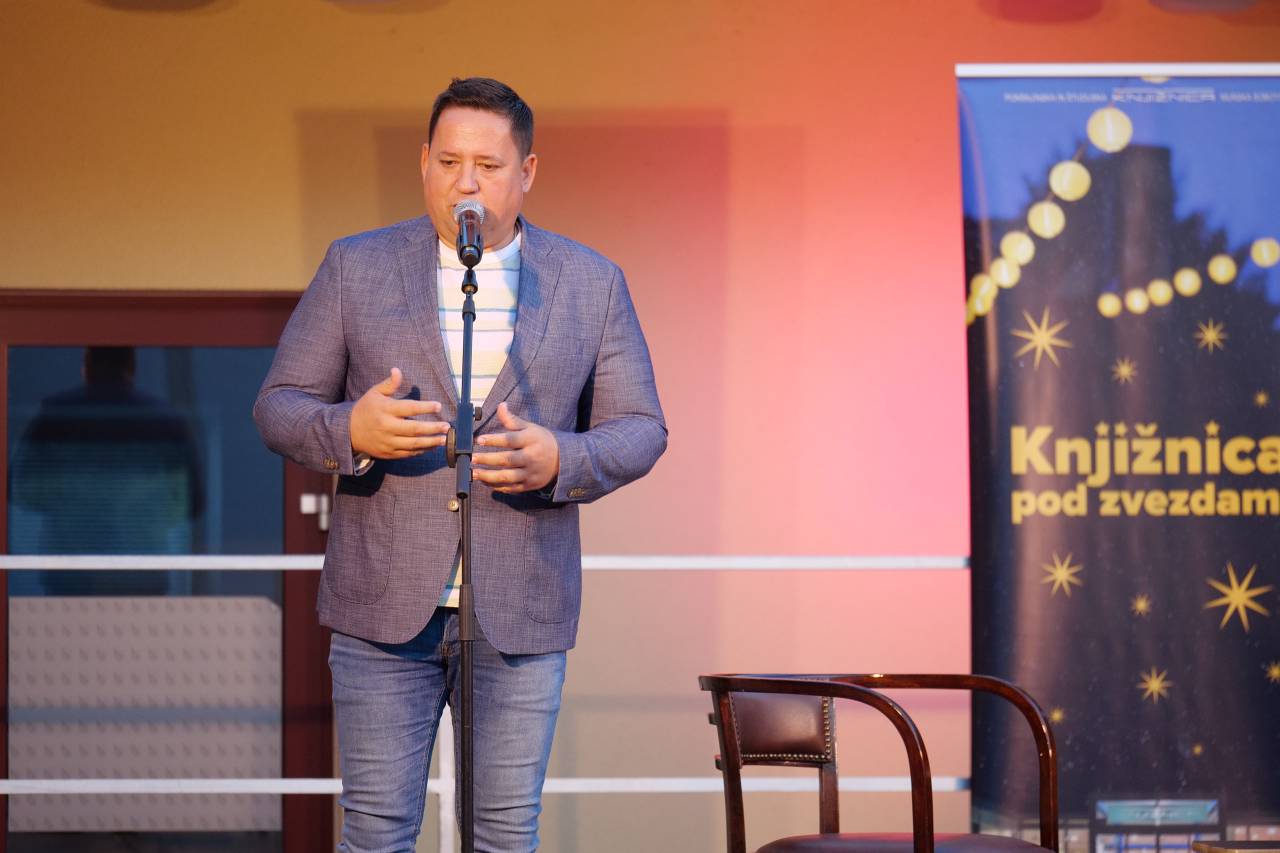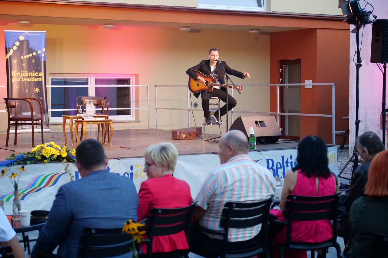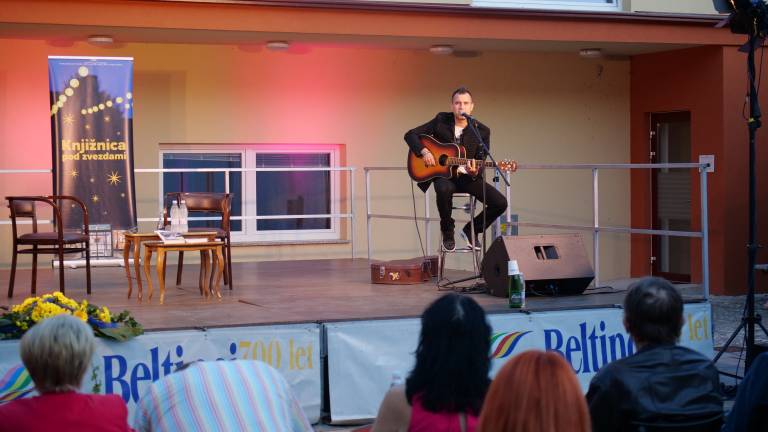 Atrij Kulturnega doma Beltinci je zaživel v znamenju literature in glasbe. V sklopu programa Knjižnica pod zvezdami je literarni gost večera bil Andrej Stare, ki se je predstavil z delom Minister Gregor pa nič.