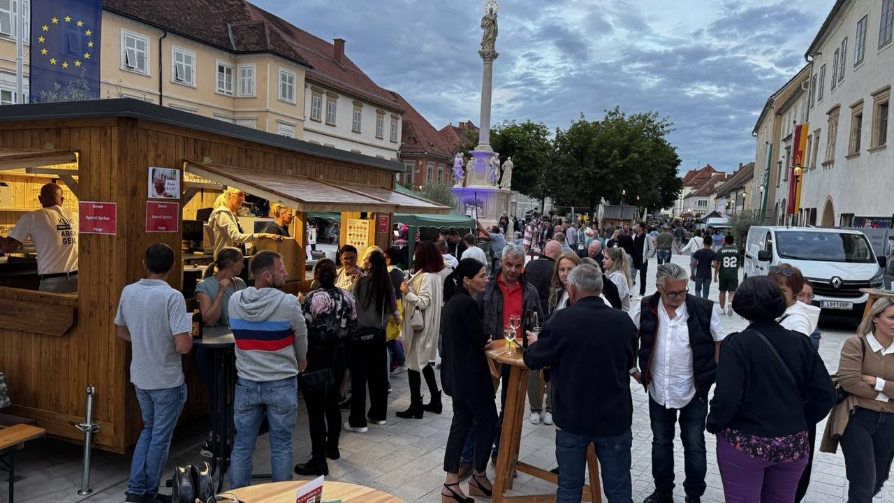 Središče mesta je bilo v petek zaprto za promet, odprto pa za ljudi. Obiskovalci – od družin z otroki do upokojencev in mladih parov – so posedali v lokalih, stali ob visokih barskih mizah, si ogledovali izložbe, se preizkušali v balinanju ali pa se zgolj sprehajali.