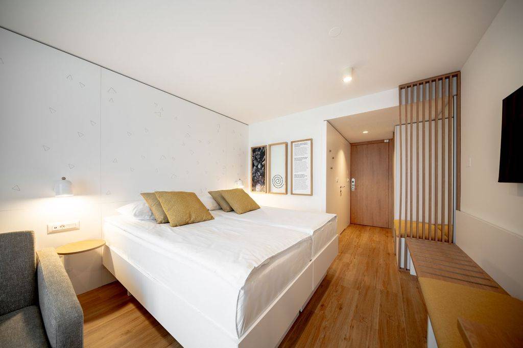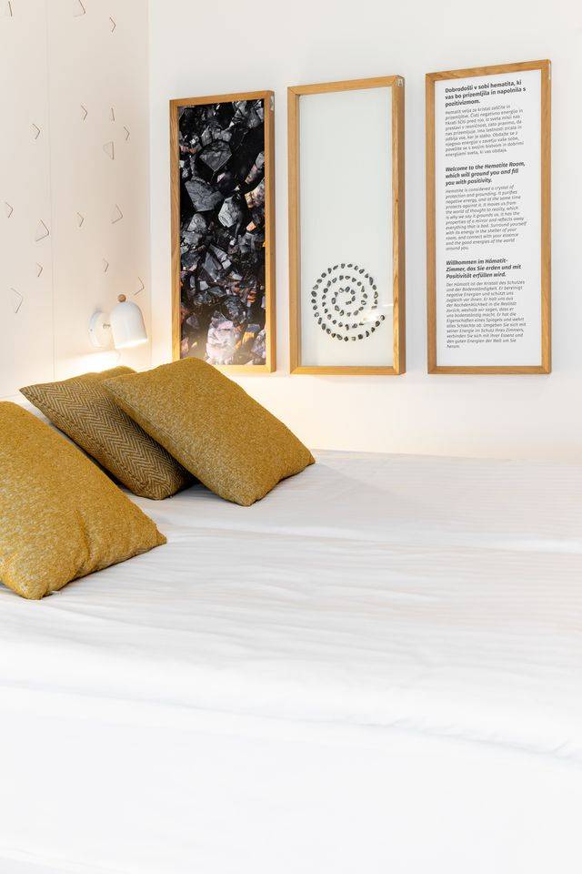 Pri prenovi smo se tako opirali na zgodbo naše blagodejne termo-mineralne vode, štirih osnovnih elementov narave in energije štirih različnih kristalov - bela kamena strela, vijoličen ametist, roza roževec in črn hematit. Prenovljenih 54 sob tako pripoveduje zgodbo dveh kristalov, in sicer roževec in hematit,« pojasnjujejo.