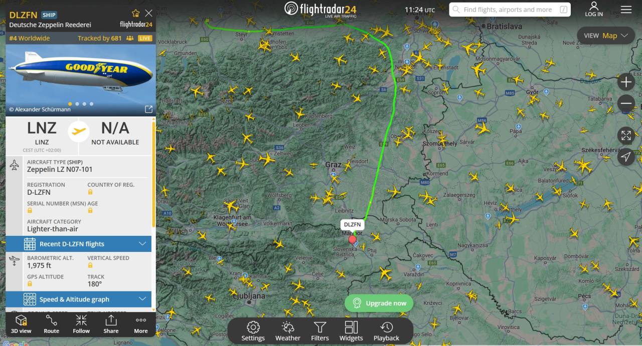 Natančna letalska trasa je odvisna od vremenskih razmer, zato bo trenutna lokacija Blimpa ves čas njegove poti v živo dostopna na spletni strani Flight Radar pod oznako D-LZFN.