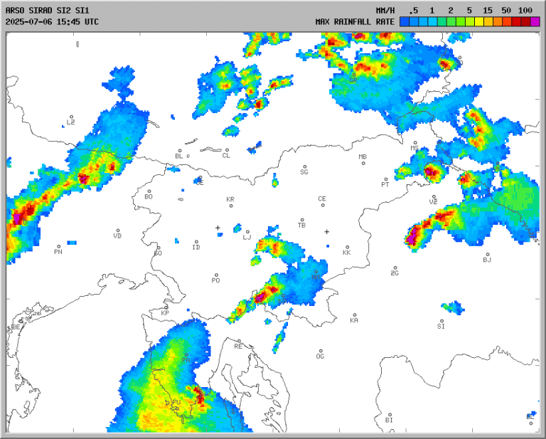 Glavnino vremenskega dogajanja pa lahko pričakujemo po 18. uri, ko bodo nevihtni sistemi potovali iz Italije preko Slovenije proti vzhodu.