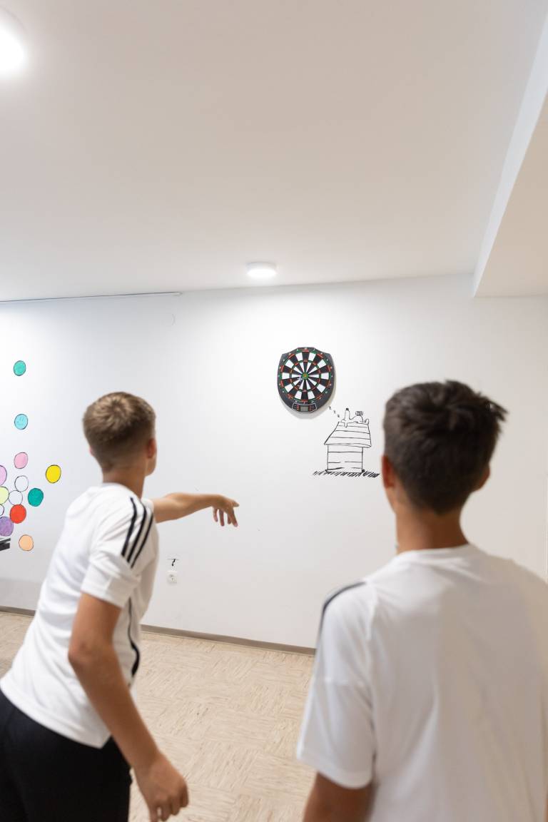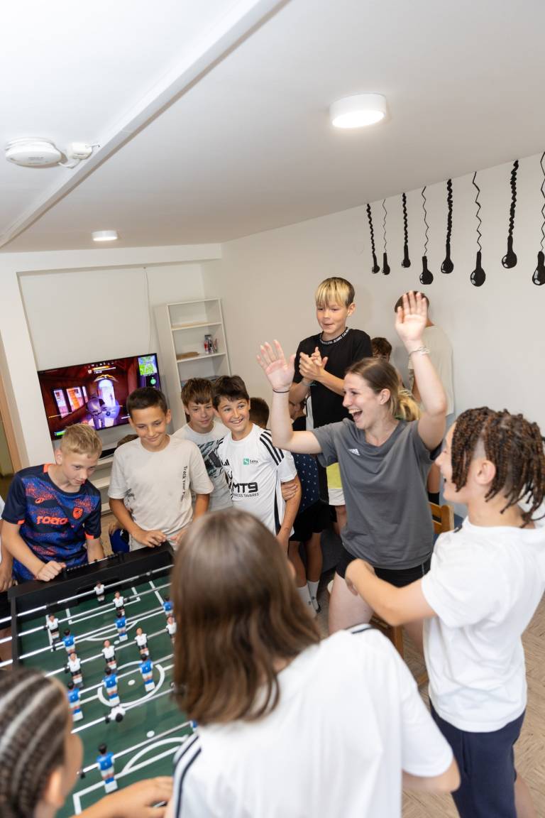V novi dijaški sobi, ki so jo sooblikovali dijaki, ki v času pouka bivajo v dijaškem domu, pa so se otroci preizkusili v igranju nogometa izven igrišča in v igranju drugih zabavnih iger.
