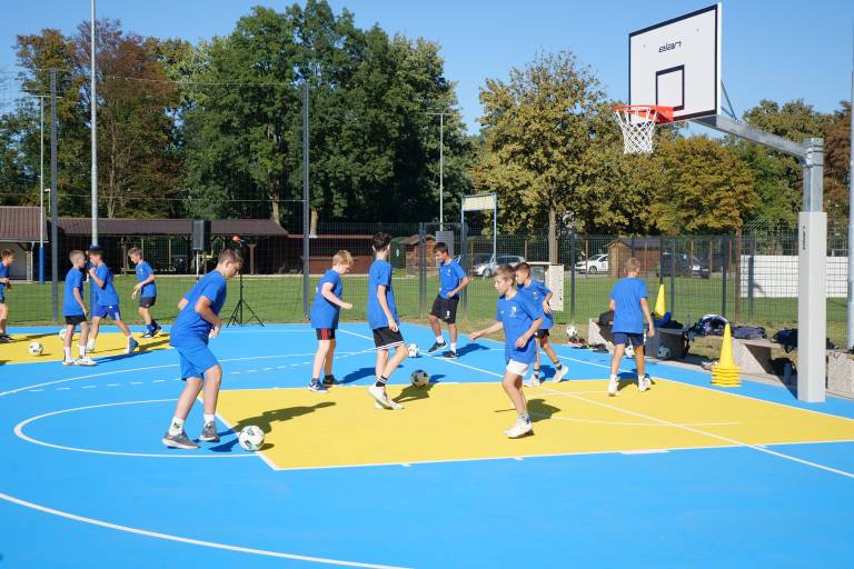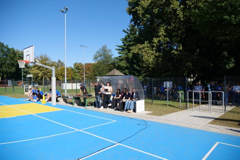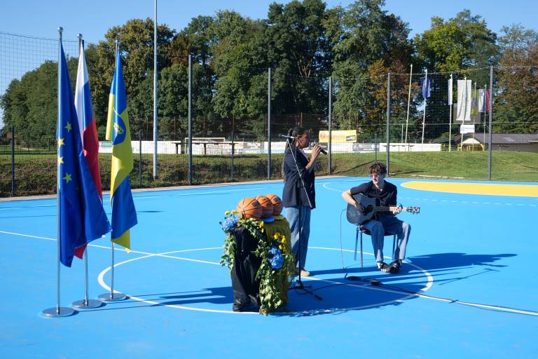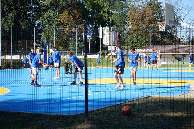 V okviru projekta sta bili temeljito prenovljeni košarkarsko in rokometno igrišče.