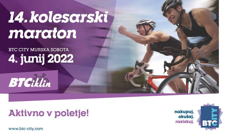14. kolesarski maraton BTCiklin 2022 je zaradi slabe vremenske napovedi prestavljen na 4. junij, s startom ob 10.00 uri na parkirišču BTC Cityja Murska Sobota.