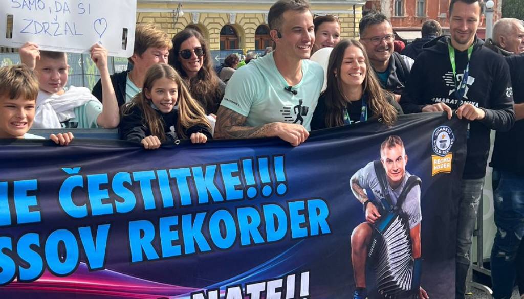 Anže Zavrl, član ansambla Gadi, je na Ljubljanskem maratonu pretekel celoten 42-kilometrski izziv, medtem ko je skoraj brez premora igral harmoniko.