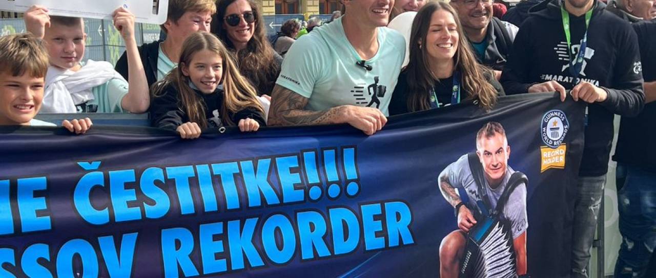 Med tekom je glasbena spremljava harmonike navdušila številne maratonce, ki so ob poslušanju veselih melodij podpirali njegov podvig.