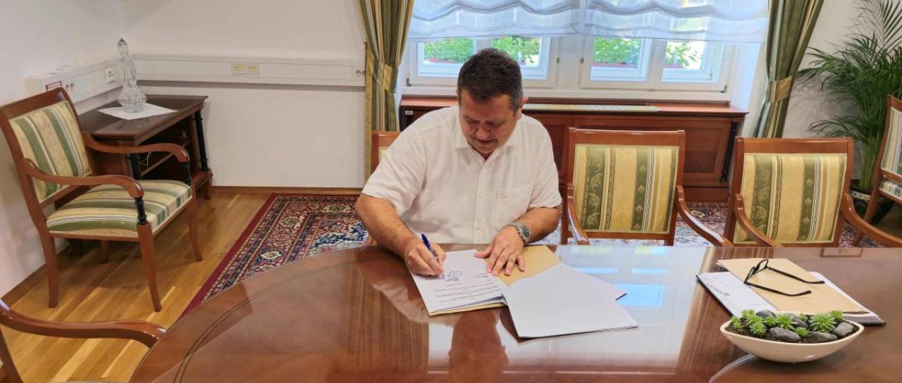 Župan občine Lendava Janez Magyar podpisal pogodbo za prenovo 400-metrske atletske steze na zunanjem igrišču pri Dvojezični osnovni šoli I Lendava.