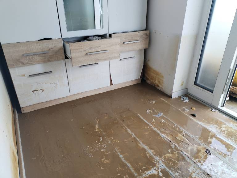 Z možem sta se pred dvema letoma preselila v stanovanje poleg gostinskega lokala, ki ga imata njuna hči in zet. Stanovanje jima je poplavilo že lani, zamenjali so pode, ampak tokrat, kot pravijo, ne bodo več obnavljali.