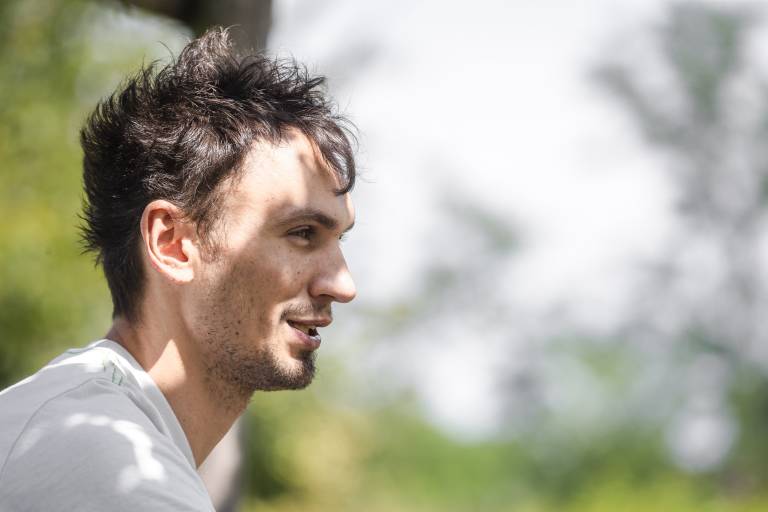 »Na začetku se je bilo težko sprijazniti s tem. Če bi se zaprl vase, ne bi imel službe. Bil bi na vozičku, se smilil sam sebi in morda zapadel v alkohol.«
