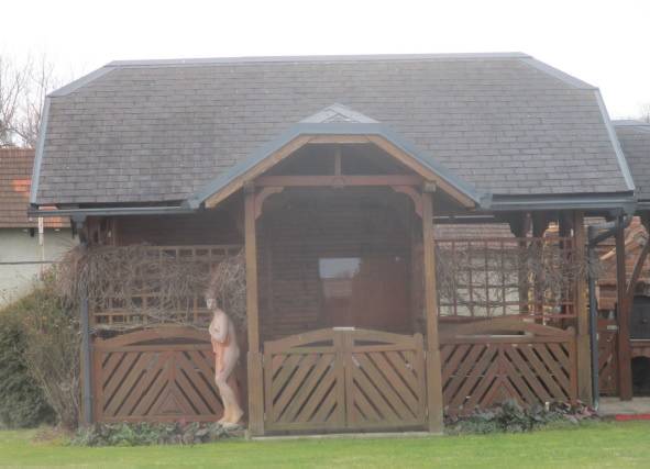 Ocenjena vrednost vrtne lesene hiške s kritino je 3.500,00 evrov, toliko znaša tudi izklicna cena.