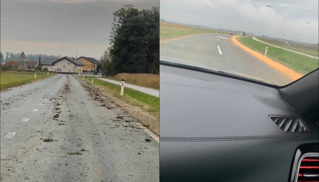 Pri obdelavi kmetijskih zemljišč in spravilu pridelkov praktično ni primera, da ne bi s traktorjem, kombajni, traktorskimi prikolicami ali drugimi stroji na cesto nanesli vsaj nekaj blata. V času spravila pridelkov pa se poleg zemlje na cestišče nanašajo tudi pridelki, kot je koruza. V skupini Radarji v Pomurju na Facebooku smo te dni zasledili več objav o umazanih cestah.